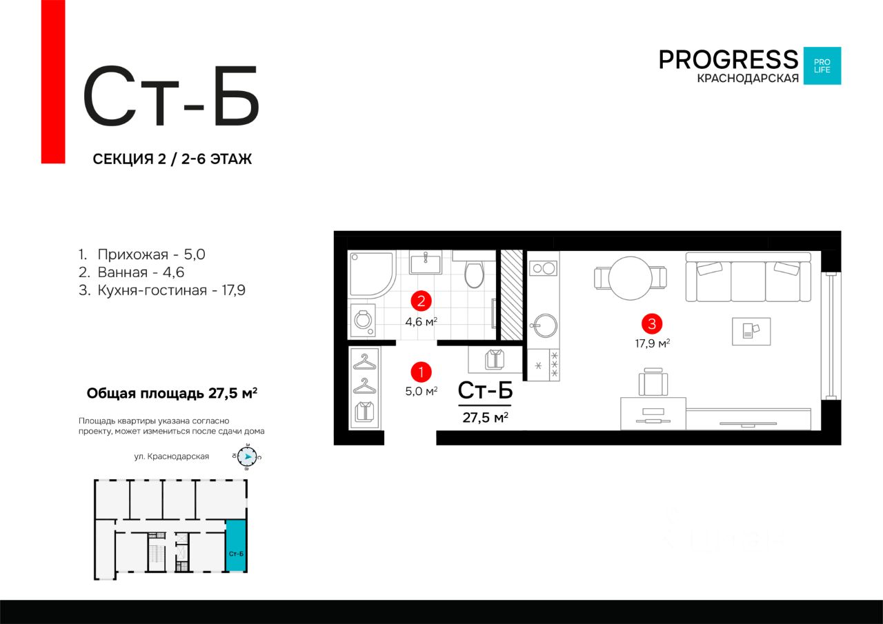 Продаётся студия в строящемся доме (Дом 1), срок сдачи: I-кв. 2028, общей площадью 27.5 кв.м., на 6 этаже. Новый жилой комплекс ''Точка'' от застройщика ''Будущее'' расположен по адресу: г. Астрахань, ул. Краснодарской, 43а