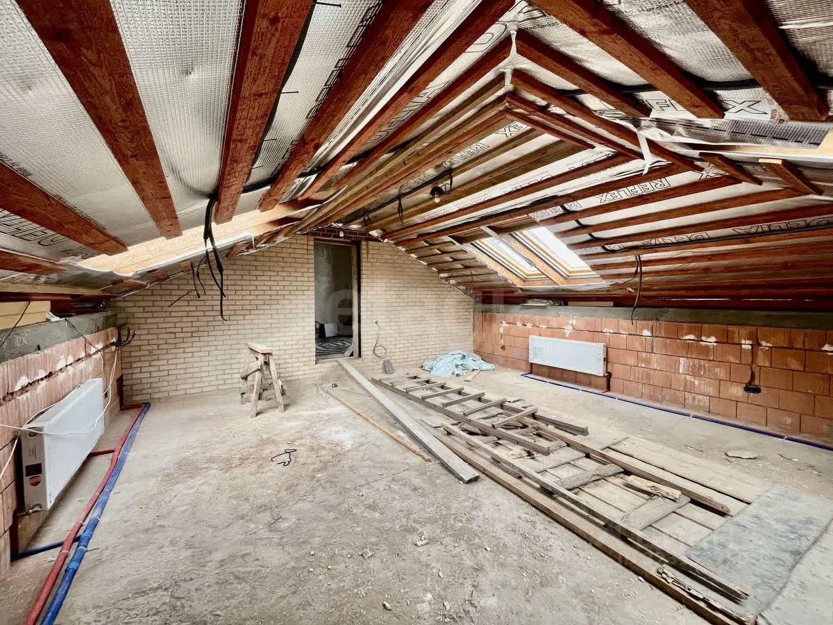 Архитектура включает два наземных этажа с террасой, мансардой и балконами, гараж на два автомобиля с немецкими воротами и винный погреб. Установлены шумоизоляционные окна с алюминиевым профилем снаружи и деревянными рамами внутри, мансардные окна оснащены датчиками дождя и защитными рольставнями, а окна в гараже и мансарде, как и дверь в погреб, имеют электропривод. В доме смонтирована комбинированная система отопления, включающая теплые полы, радиаторы и встроенные в пол конвекторы. Объект находится в состоянии предчистовой отделки с полностью завершенным ремонтом в подвале и продуманными инженерными коммуникациями, что позволяет новому владельцу лично оценить качество исполнения и реализовать индивидуальный дизайн-проект. Данное состояние предоставляет уникальную возможность адаптировать пространство под личные предпочтения без необходимости капитальных работ.