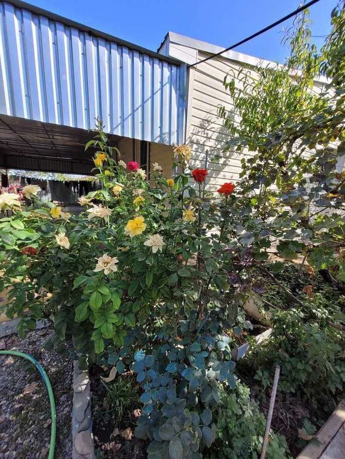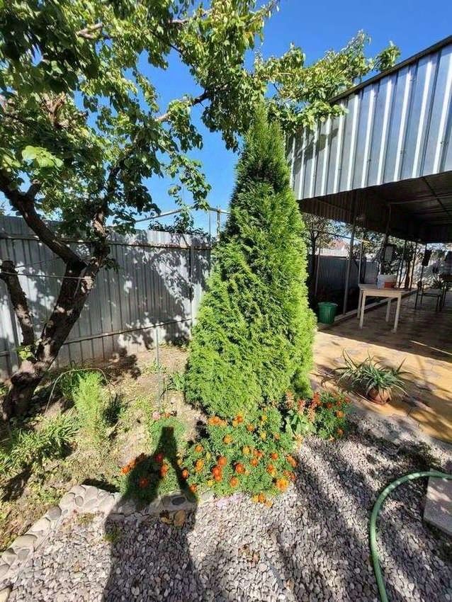 Во дворе большой навес, гараж, курятник. Плодоносящие деревья и цветы. Во дворе летом очень красиво .