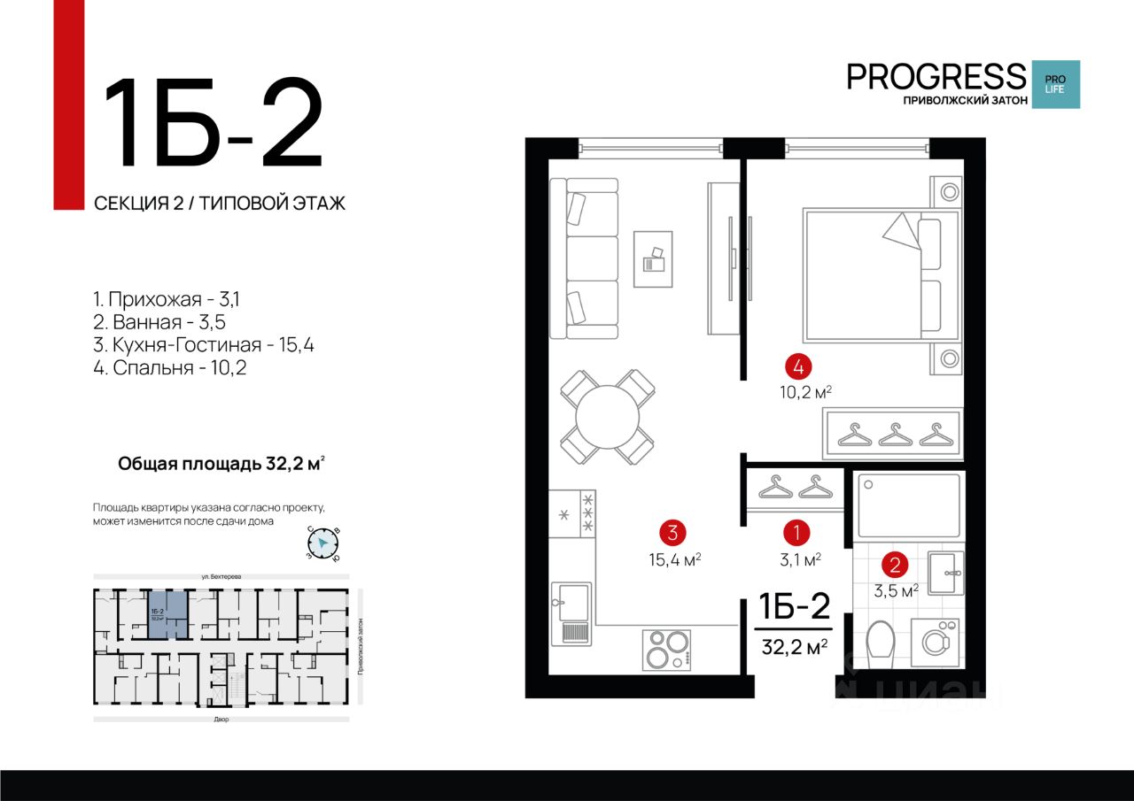 24-этажный жилой комплекс ''РRОGRЕSS Приволжский затон'' расположен на улице Бехтерева, где открываются живописные виды на Волгу и канал им. Варвация. В шаговой доступности находятся школы, детские сады, поликлиники, магазины и зоны для отдыха.
