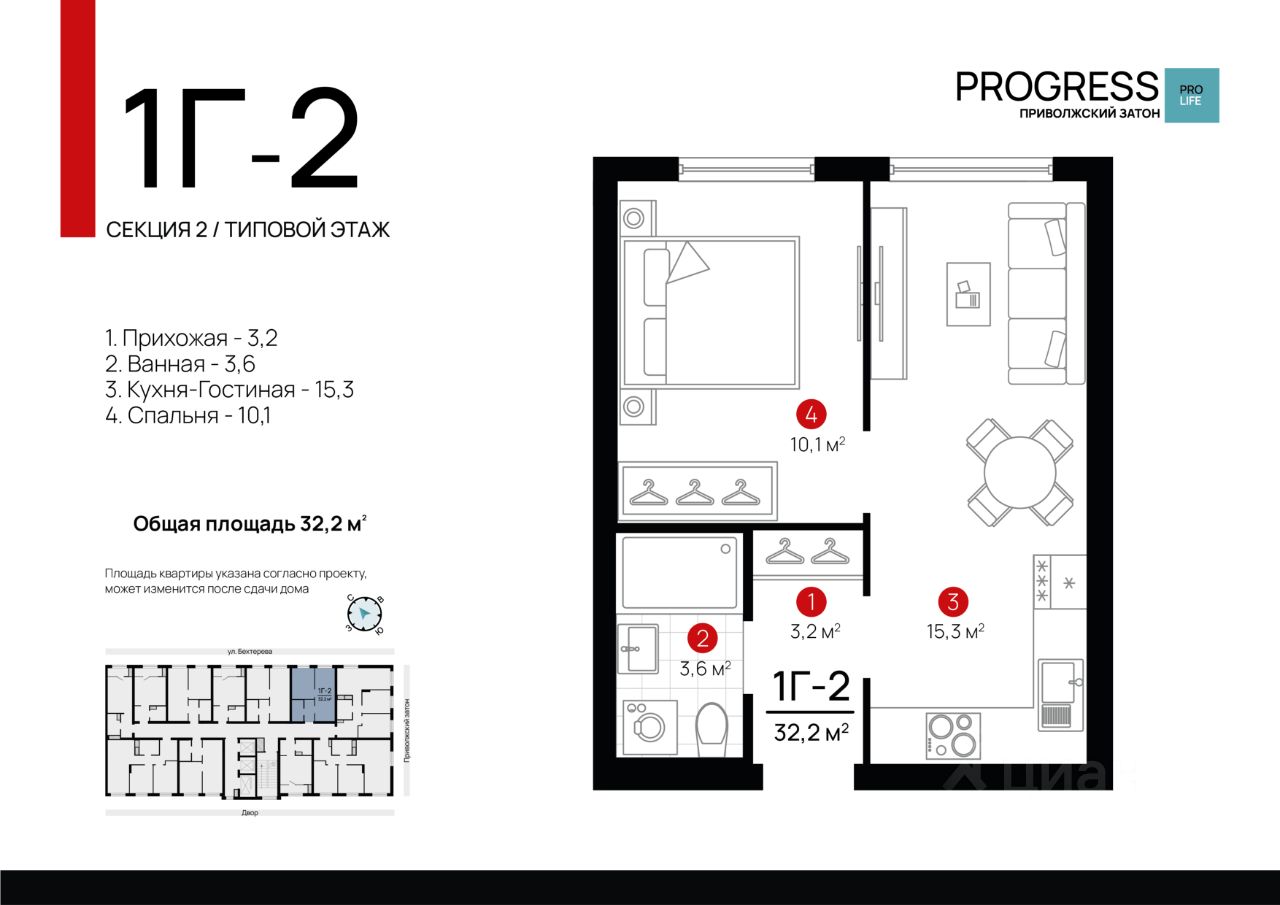 24-этажный жилой комплекс ''РRОGRЕSS Приволжский затон'' расположен на улице Бехтерева, где открываются живописные виды на Волгу и канал им. Варвация. В шаговой доступности находятся школы, детские сады, поликлиники, магазины и зоны для отдыха.