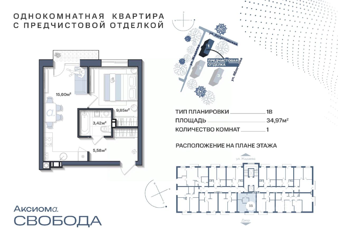 Продаётся 1-комнатная квартира в строящемся доме (Дом 1), срок сдачи: II-кв. 2026, общей площадью 34.96 кв.м., на 4 этаже. Свобода духа, свобода выбора, свобода творчества! Место, где вы точно станете автором своей жизни!