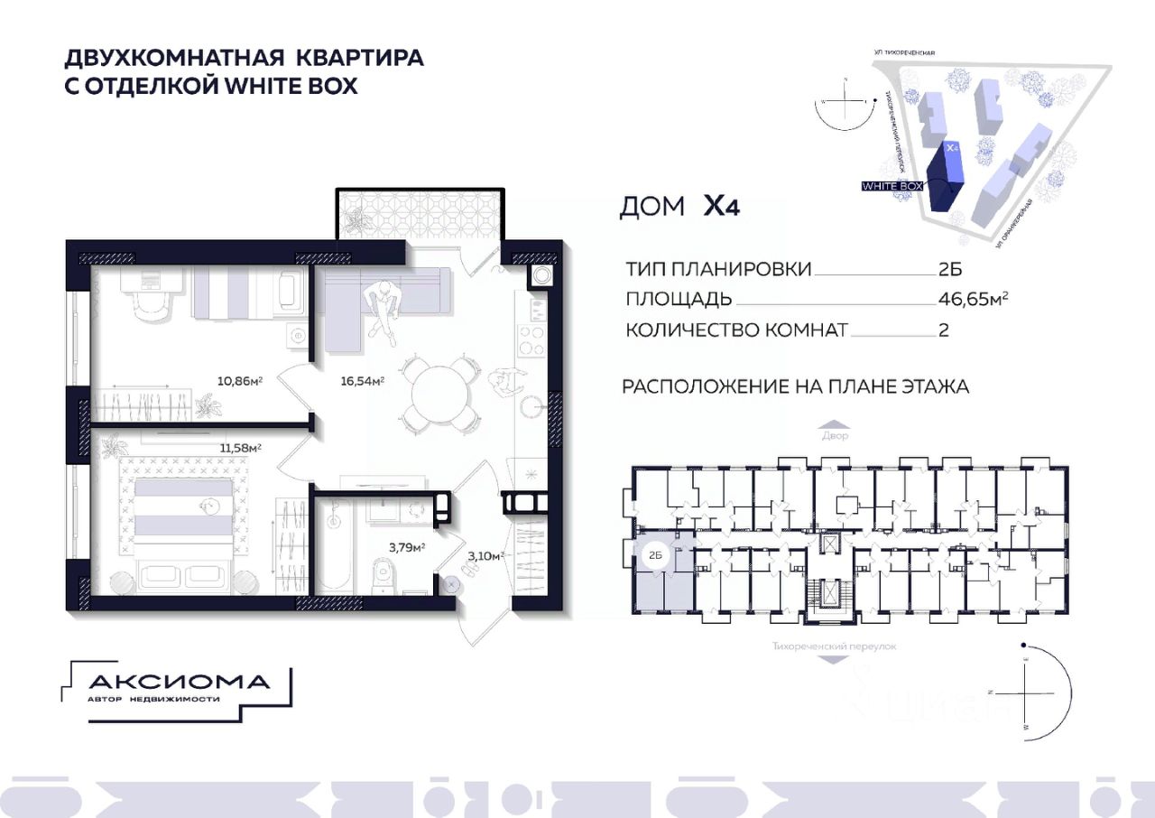 Продаётся 2-комнатная квартира в строящемся доме (Дом 4), срок сдачи: II-кв. 2027, общей площадью 46.65 кв.м., на 3 этаже. Аксиома на Тихореченской