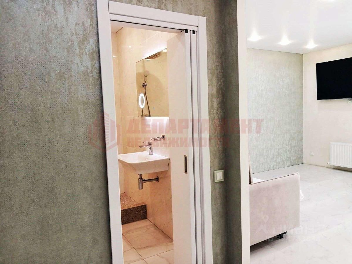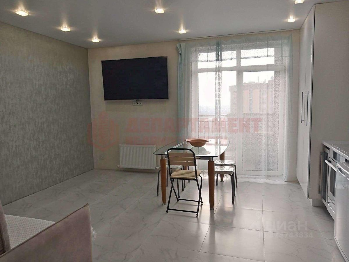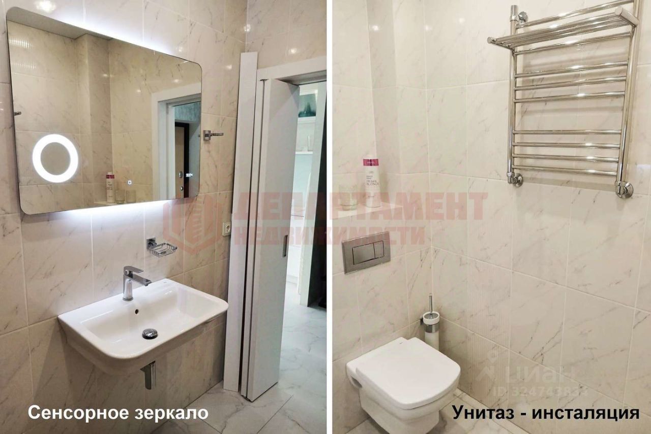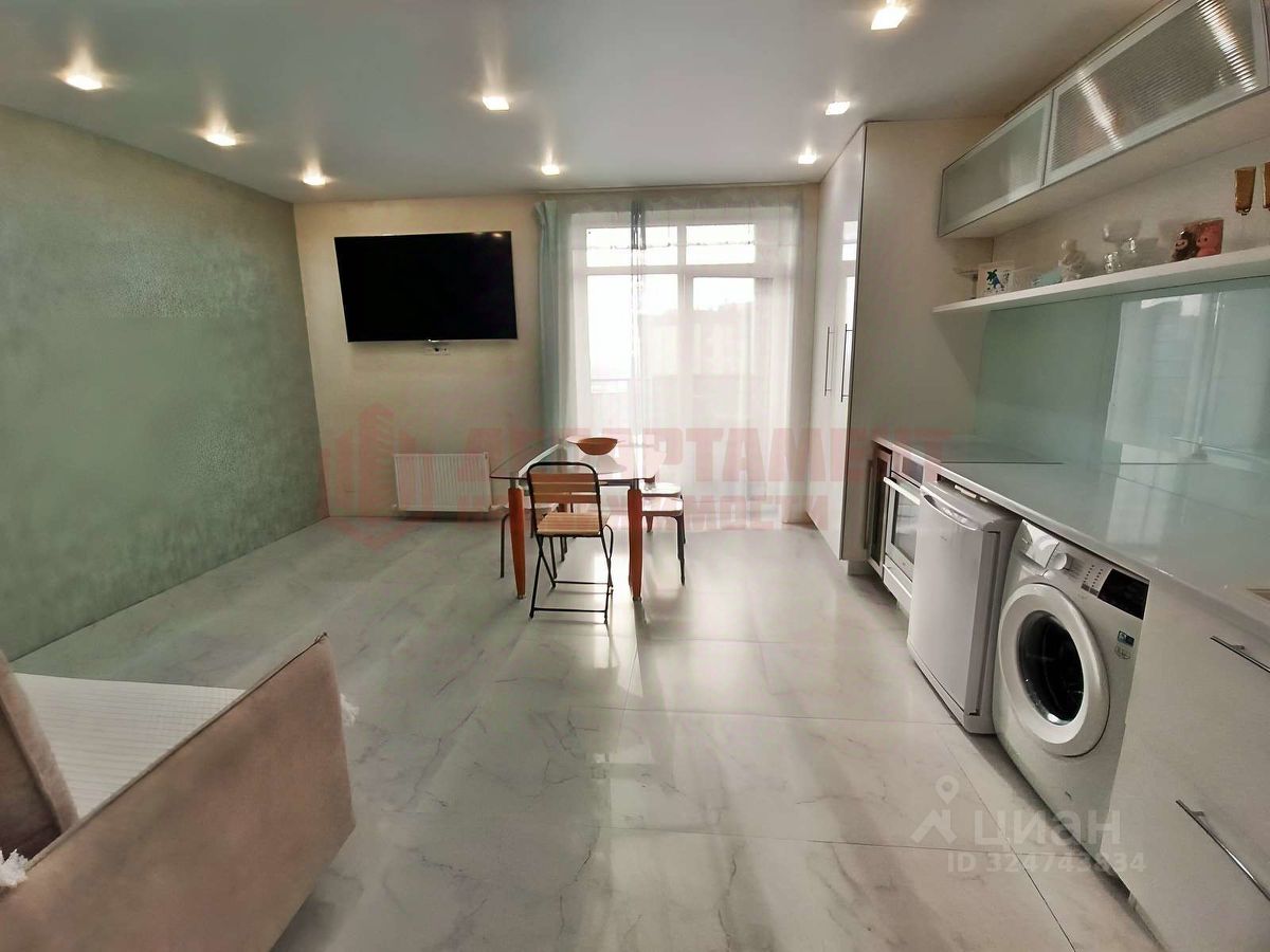 Только что сделан ремонт. Пол - крупная плитка под мрамор. По всей квартире потолок натяжной (h=2.85м) со светодиодными лампами.