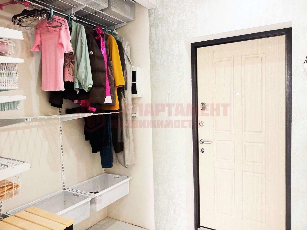 Во входной зоне надёжная входная дверь с терморазрывом. Обустроено место для хранения, с полками до потолка (а la ''стенной шкаф'').