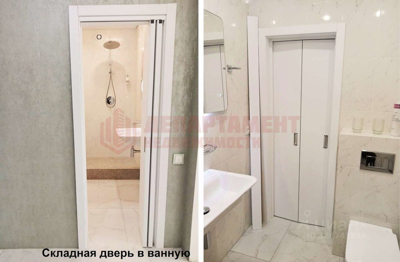 Ванная комната из холла через складную дверь. Просторно. Всё в плитке.