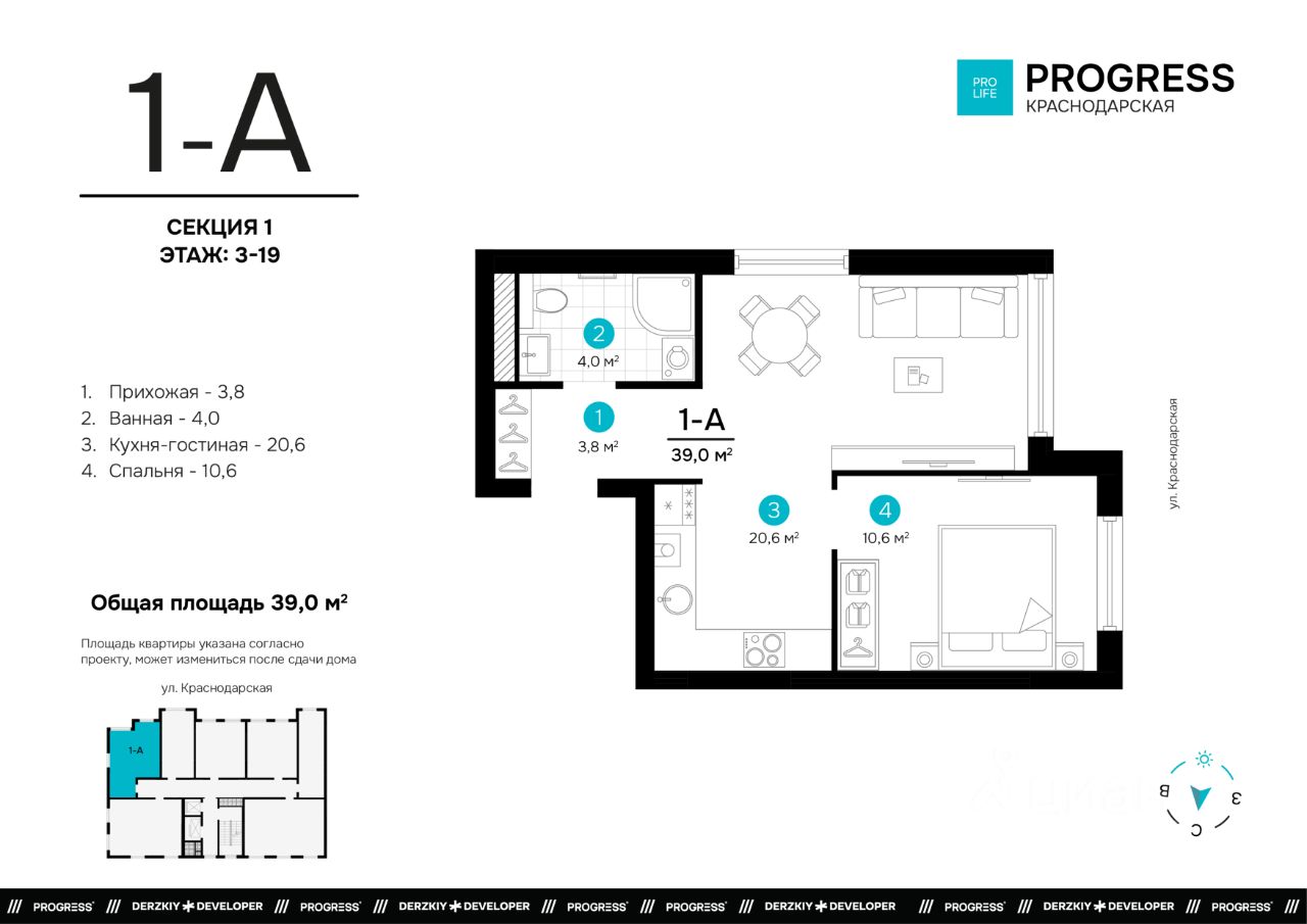 Продаётся 1-комнатная квартира в строящемся доме (Дом 1), срок сдачи: I-кв. 2028, общей площадью 39.82 кв.м., на 3 этаже. Новый жилой комплекс ''Точка'' от застройщика ''Будущее'' расположен по адресу: г. Астрахань, ул. Краснодарской, 43а