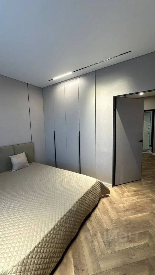 Уютная жилая комната с вместительными шкафами, сплитсистемой и комфортной кроватью с ортопедическим матрасом — идеальное место для отдыха.
