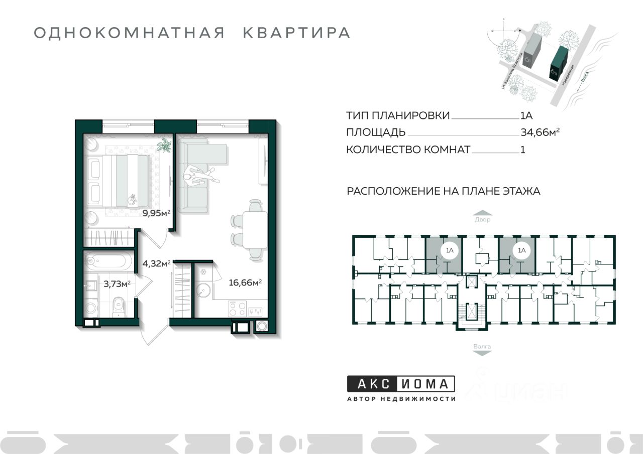 Продаётся 1-комнатная квартира в строящемся доме (Дом 2), срок сдачи: III-кв. 2026, общей площадью 34.66 кв.м., на 2 этаже.