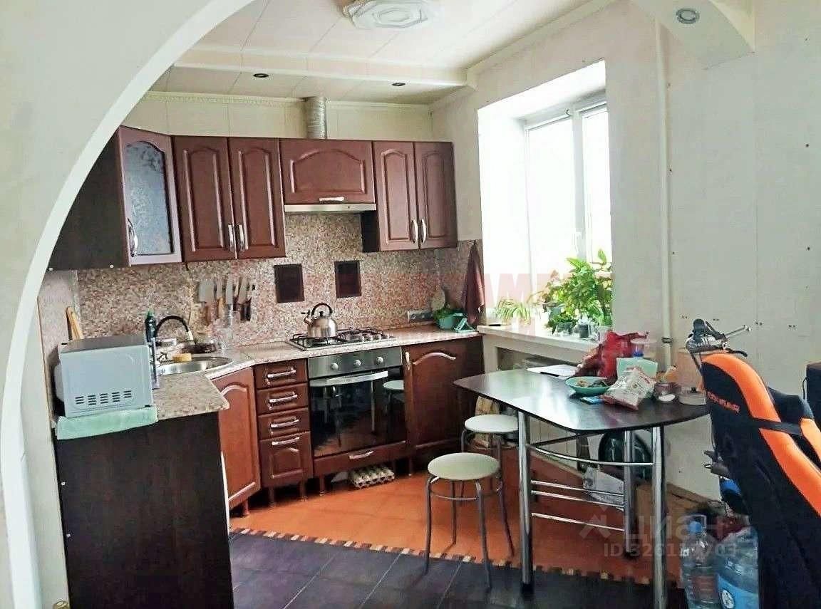 Из гостиной вход на кухню через изящную арку. Очень удобно ) На кухне гарнитур, газовая плита, вытяжка, колонка. Горячая вода всегда в наличии.