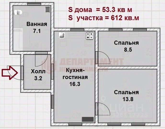 Кирпичный и керамзито-бетонный дом 53,3 кв.м на участке 612 кв.м. Расположение:Кировский район, пос.Инициативный.