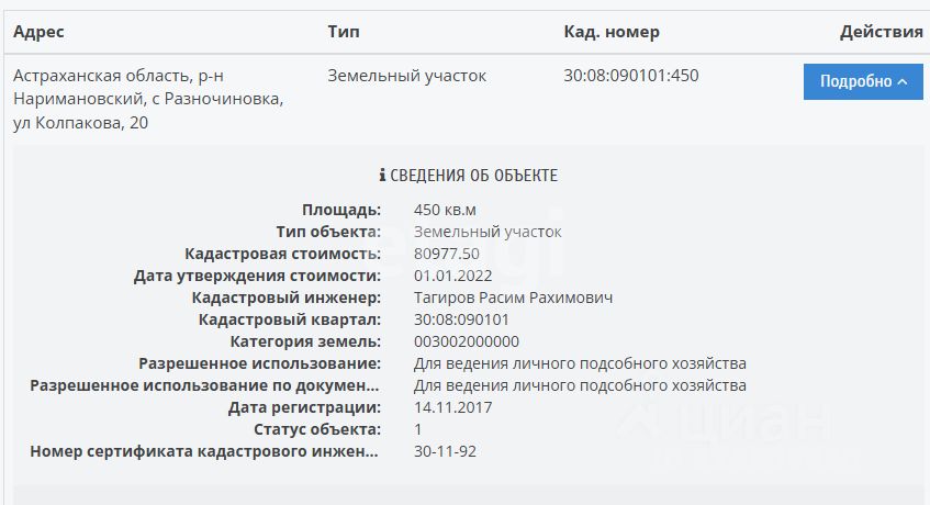 Продается земельный участок площадью 4.5 сотки в селе Разночиновка Наримановского района, Астраханской области. Вид разрешенного использования — для ведения личного подсобного хозяйства, что позволяет построить капитальный жилой дом для круглогодичного проживания, а также вести собственное хозяйство. Участок расположен в тихой, спокойной части села, вдали от шумных дорог, обеспечивая приватность и полное погружение в загородную атмосферу. Территория идеально подходит для возведения дома или обустройства дачи с садом и огородом. Участок имеет одного взрослого собственника, не обременен долгами или залогами, а полный пакет документов подготовлен для быстрого и безопасного проведения сделки.