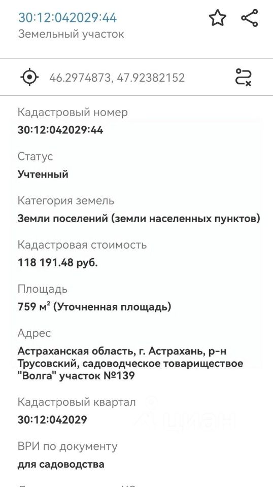 #УчастокВДеревне #ЗемляВДом #СвойДомВАстрахани #УчастокНаПродажу #Садоводство 30:12:042029:44 В навигаторе проезд до участка координаты: 46.2974873, 47.92382152