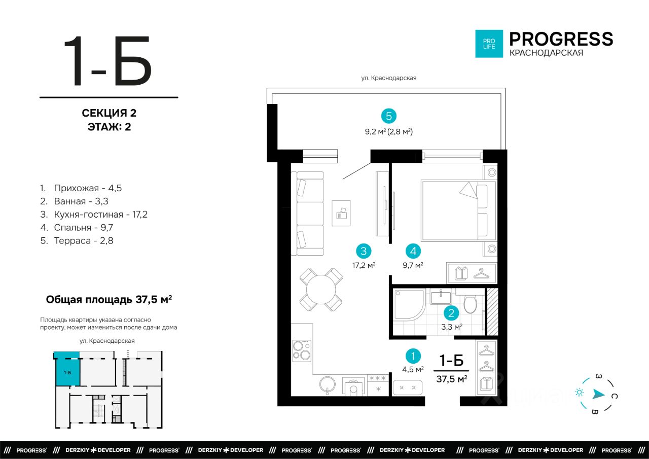 Продаётся 1-комнатная квартира в строящемся доме (Дом 1), срок сдачи: I-кв. 2028, общей площадью 37.46 кв.м., на 2 этаже. Новый жилой комплекс ''Точка'' от застройщика ''Будущее'' расположен по адресу: г. Астрахань, ул. Краснодарской, 43а