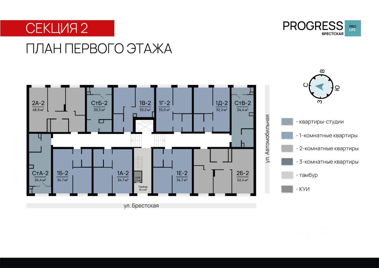 Квартал ''PROGRESS Брестская'' расположен в микрорайоне Автогородок на улице Брестская. Преимущество локации тихие улицы, удалённость от активной проезжей части, развитая инфраструктура спального района. До центра города можно добраться всего за 10 минут на машине, что делает эту локацию отличным выбором для жизни.