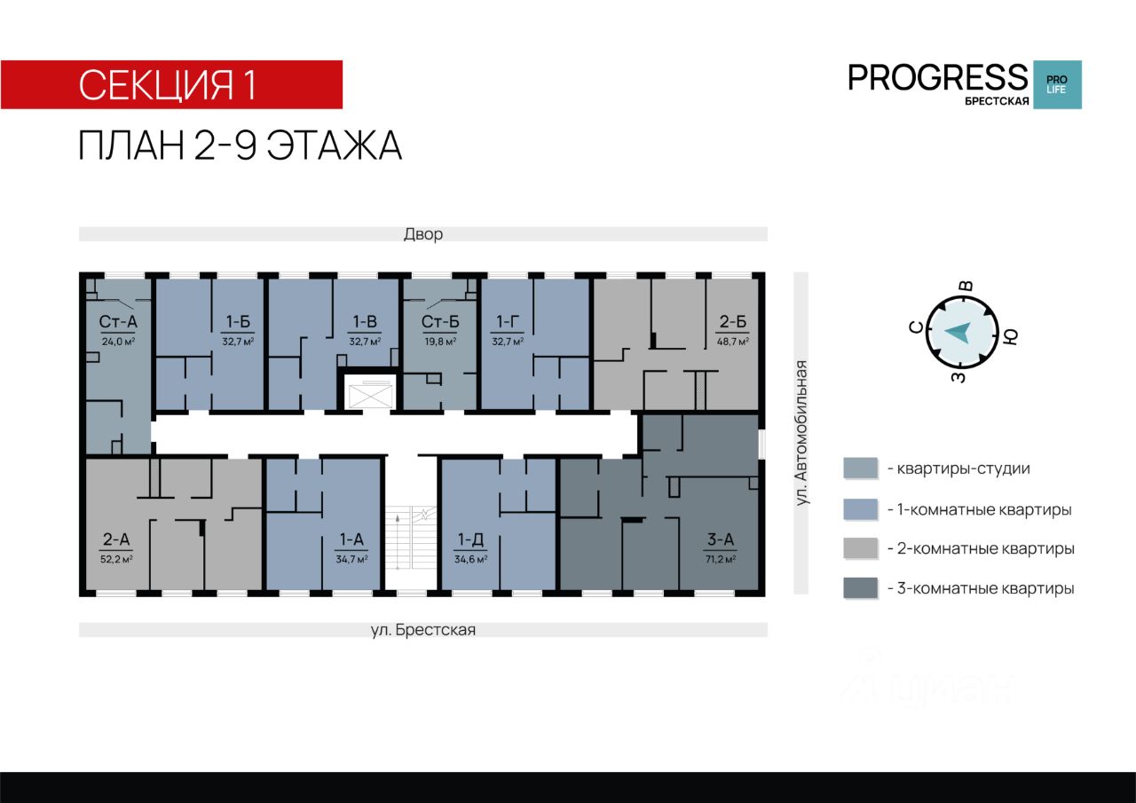 Квартал ''PROGRESS Брестская'' расположен в микрорайоне Автогородок на улице Брестская. Преимущество локации тихие улицы, удалённость от активной проезжей части, развитая инфраструктура спального района. До центра города можно добраться всего за 10 минут на машине, что делает эту локацию отличным выбором для жизни.
