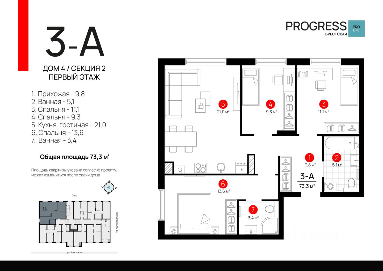 Квартал ''PROGRESS Брестская'' расположен в микрорайоне Автогородок на улице Брестская. Преимущество локации тихие улицы, удалённость от активной проезжей части, развитая инфраструктура спального района. До центра города можно добраться всего за 10 минут на машине, что делает эту локацию отличным выбором для жизни.