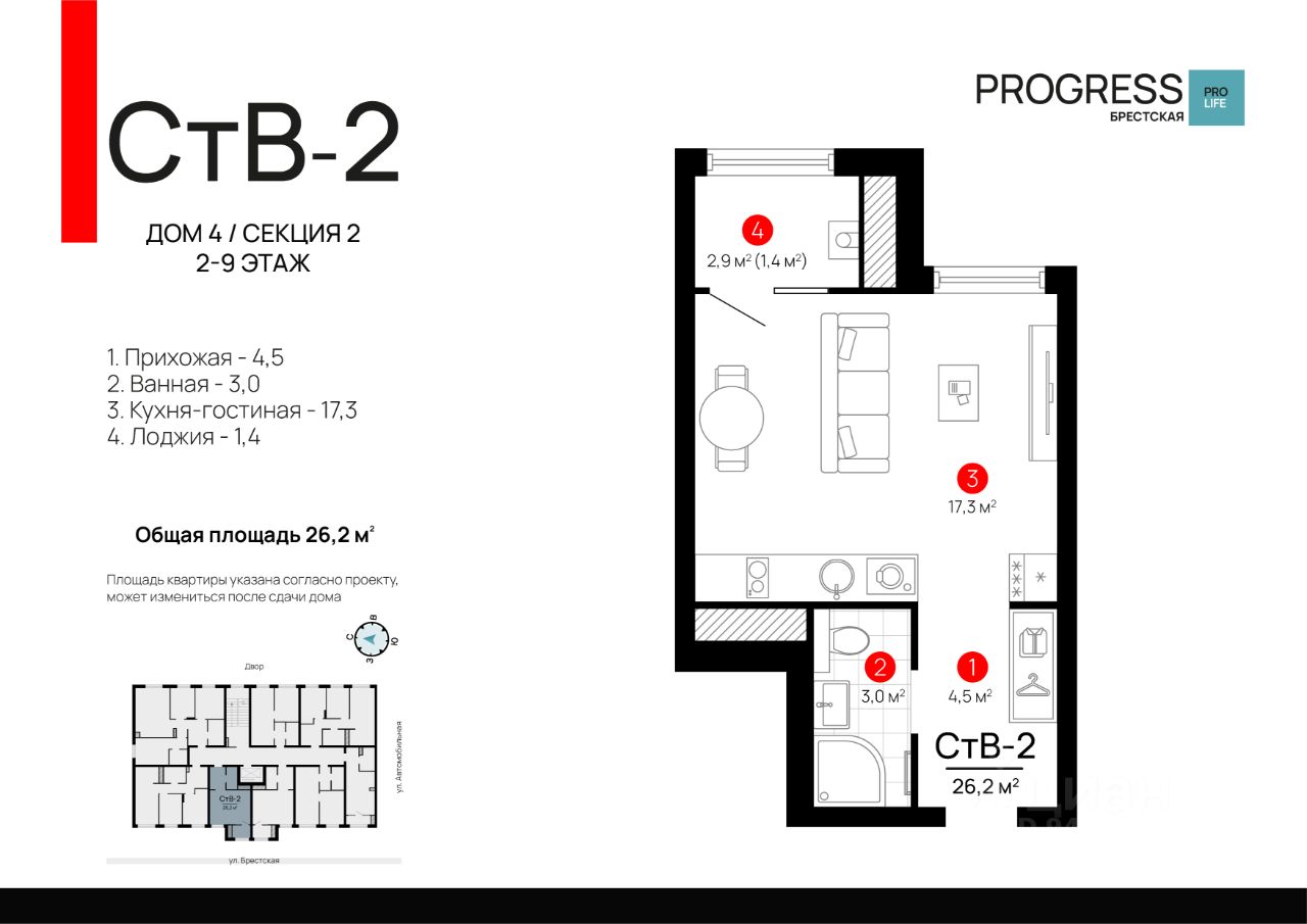 Общая площадь26,06 м2