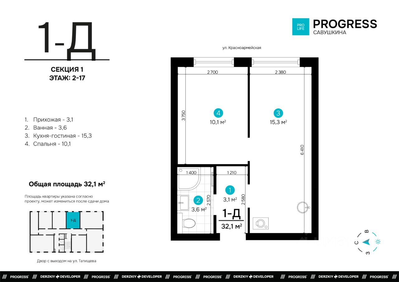 ''PROGRESS Савушкина'' для тех, кто открыто смотрит в будущее. Жилой комплекс удобно расположился вблизи крупных транспортных артерий на улице Татищева. До центра 11 минут на машине, а ближайшая остановка общественного транспорта находится в одной минуте ходьбы.