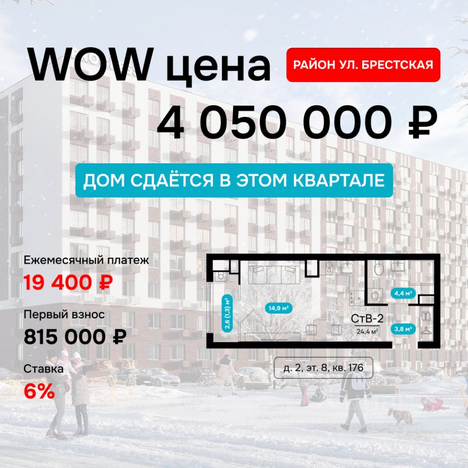 продам 1-к, Брестская, 11/210 676 600 ₽