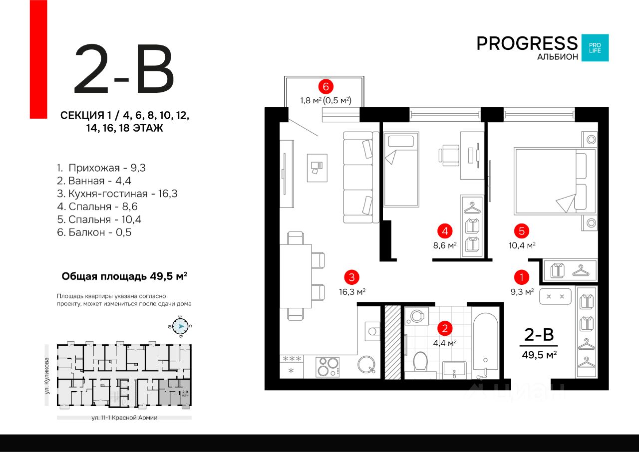 ''PROGRESS Альбион'' находится на улице Куликова в развивающемся Кировском районе. Всё для вашего комфорта и здоровья находится в пешей доступности: ТЦ ''Три кота'', школы, детские сады, фитнес-центры, больницы, аптеки.