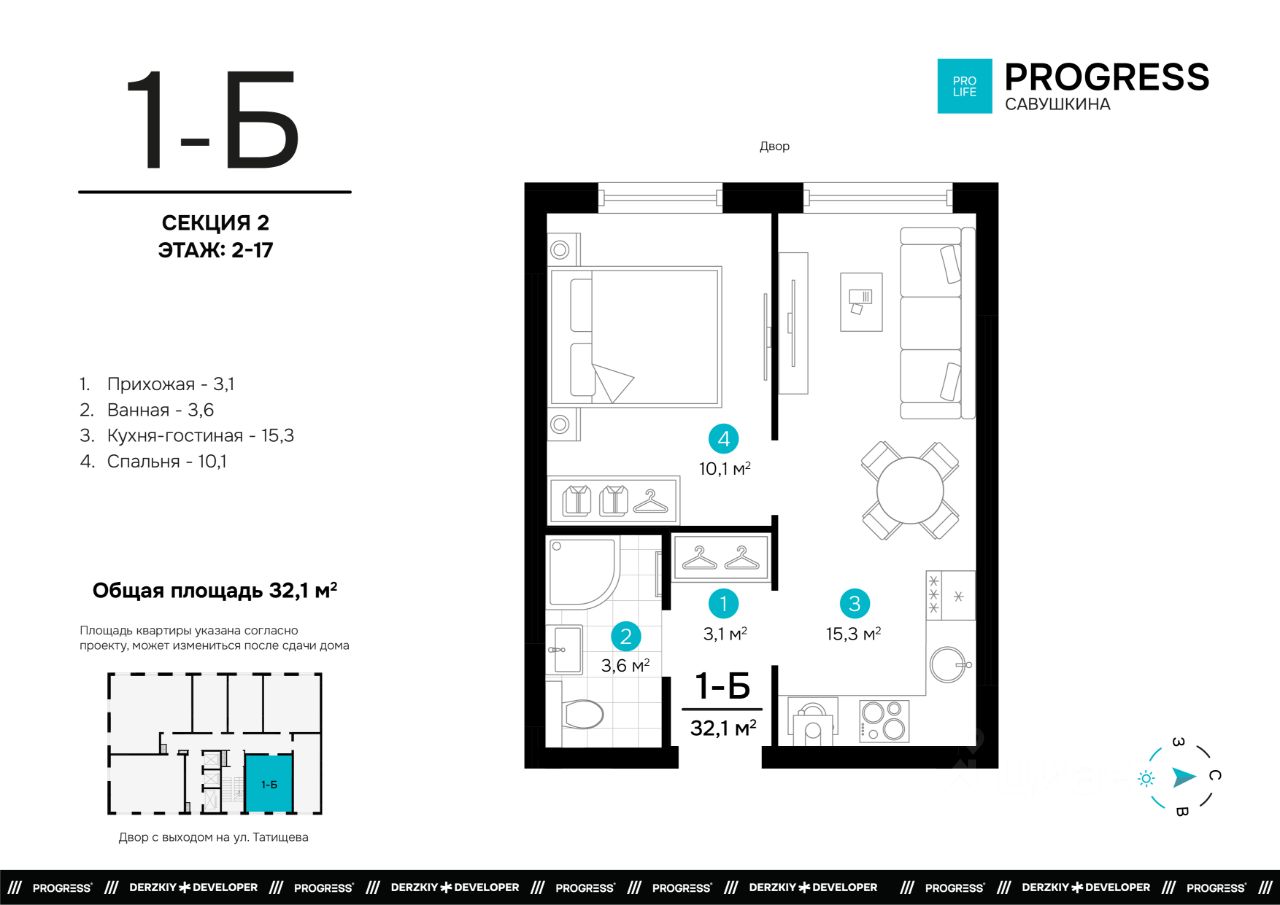''PROGRESS Савушкина'' для тех, кто открыто смотрит в будущее. Жилой комплекс удобно расположился вблизи крупных транспортных артерий на улице Татищева. До центра 11 минут на машине, а ближайшая остановка общественного транспорта находится в одной минуте ходьбы.