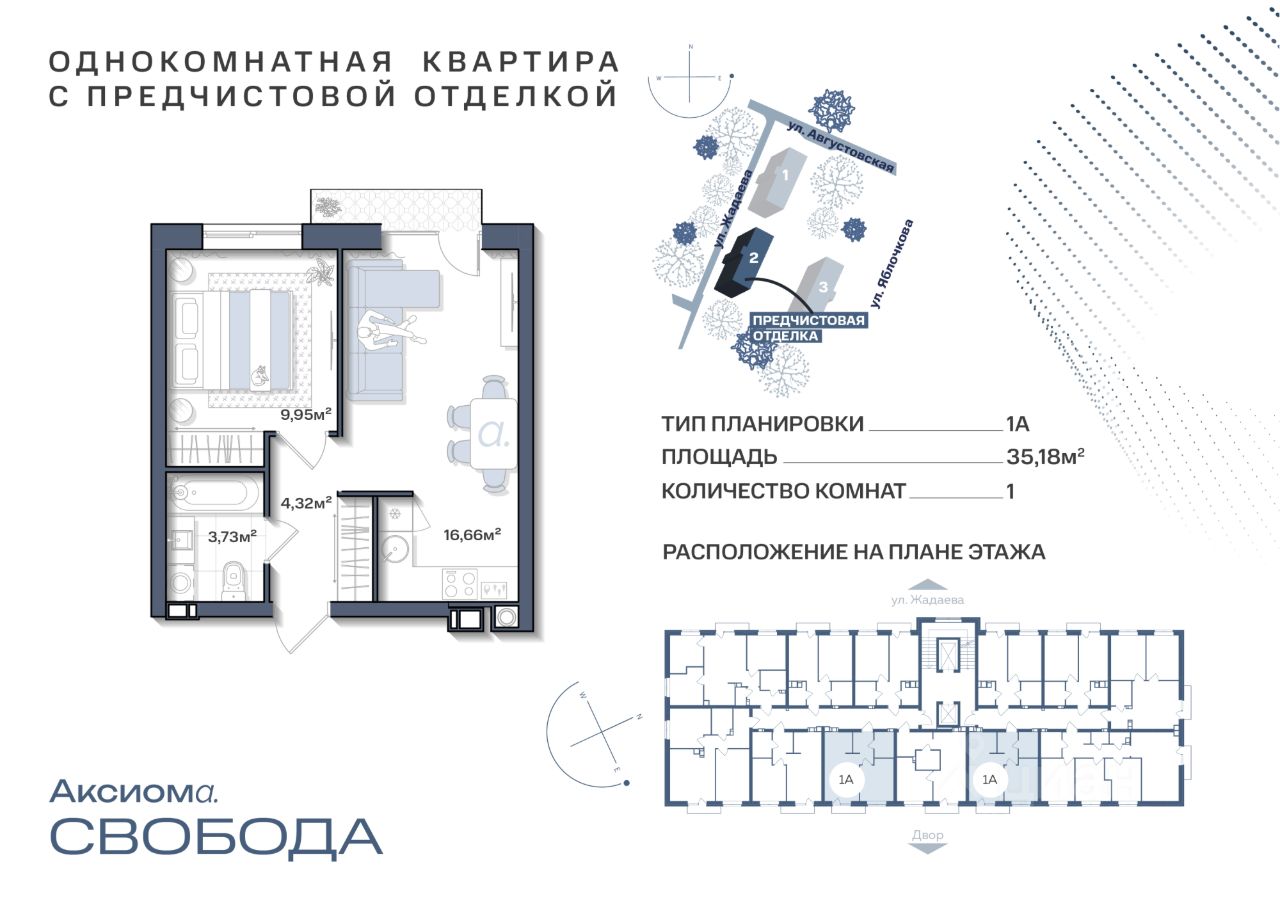 Продаётся 1-комнатная квартира в строящемся доме (Дом 2), срок сдачи: II-кв. 2026, общей площадью 35.18 кв.м., на 9 этаже. Свобода духа, свобода выбора, свобода творчества! Место, где вы точно станете автором своей жизни!