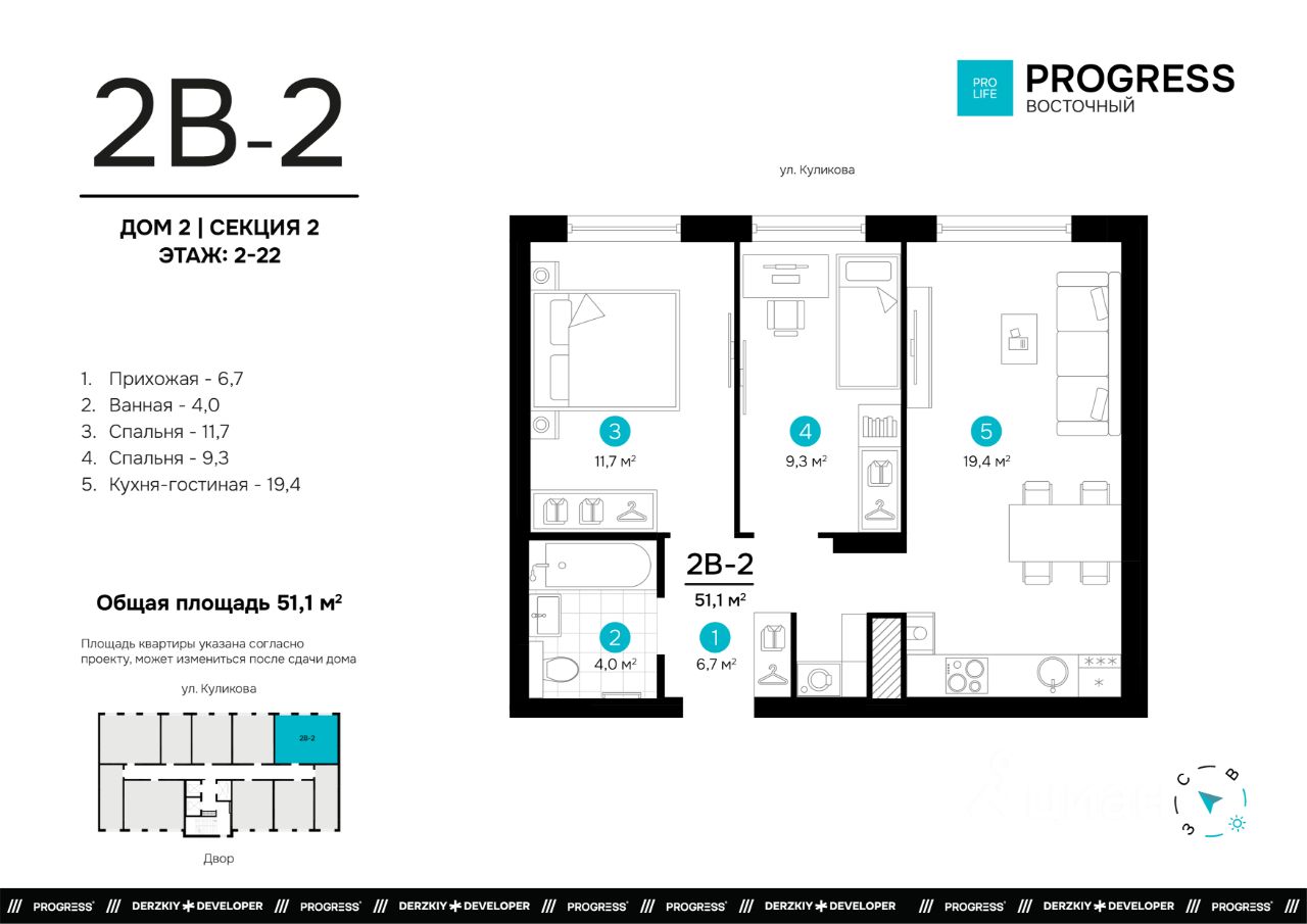 Городской квартал ''PROGRESS Восточный'' находится в обустроенном и востребованном районе на улице Нововосточная. Проект состоит из трёх домов переменной высоты от 17 до 24 этажей. Всё для комфортной жизни рядом: торговые центры ''Три кота'' и ''Восточный'', школы, детские сады, тренажёрные залы, аптеки и поликлиники. Удобное расположение транспортных развязок: 6 остановок, 9 маршрутов общественного транспорта. Выезд на основную проезжую часть ул. Нововосточная.