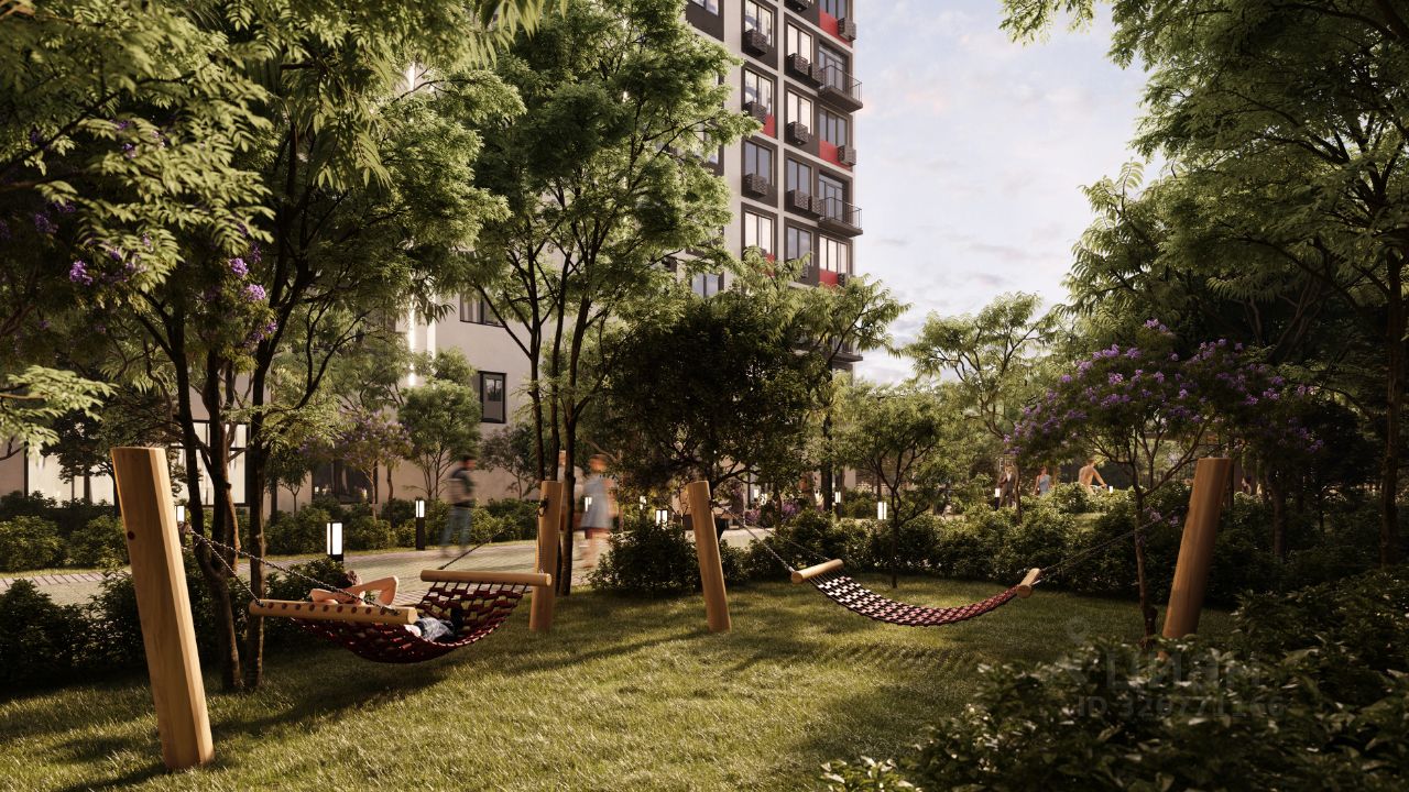 Жилой комплекс создан для удобного и приятного отдыха. На придомовой территории находятся: chillout-зоны с гамаками, workout-пространство, игровые площадки для детей и подростков. Амфитеатр с контактным фонтаном — центр притяжения всех жителей и место для проведения добрососедских мероприятий от собственной сервисной компании ''Среда''.