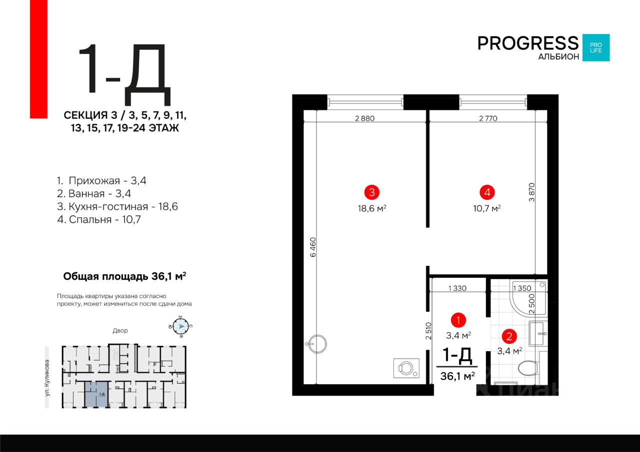 ''PROGRESS Альбион'' находится на улице Куликова в развивающемся Кировском районе. Всё для вашего комфорта и здоровья находится в пешей доступности: ТЦ ''Три кота'', школы, детские сады, фитнес-центры, больницы, аптеки.