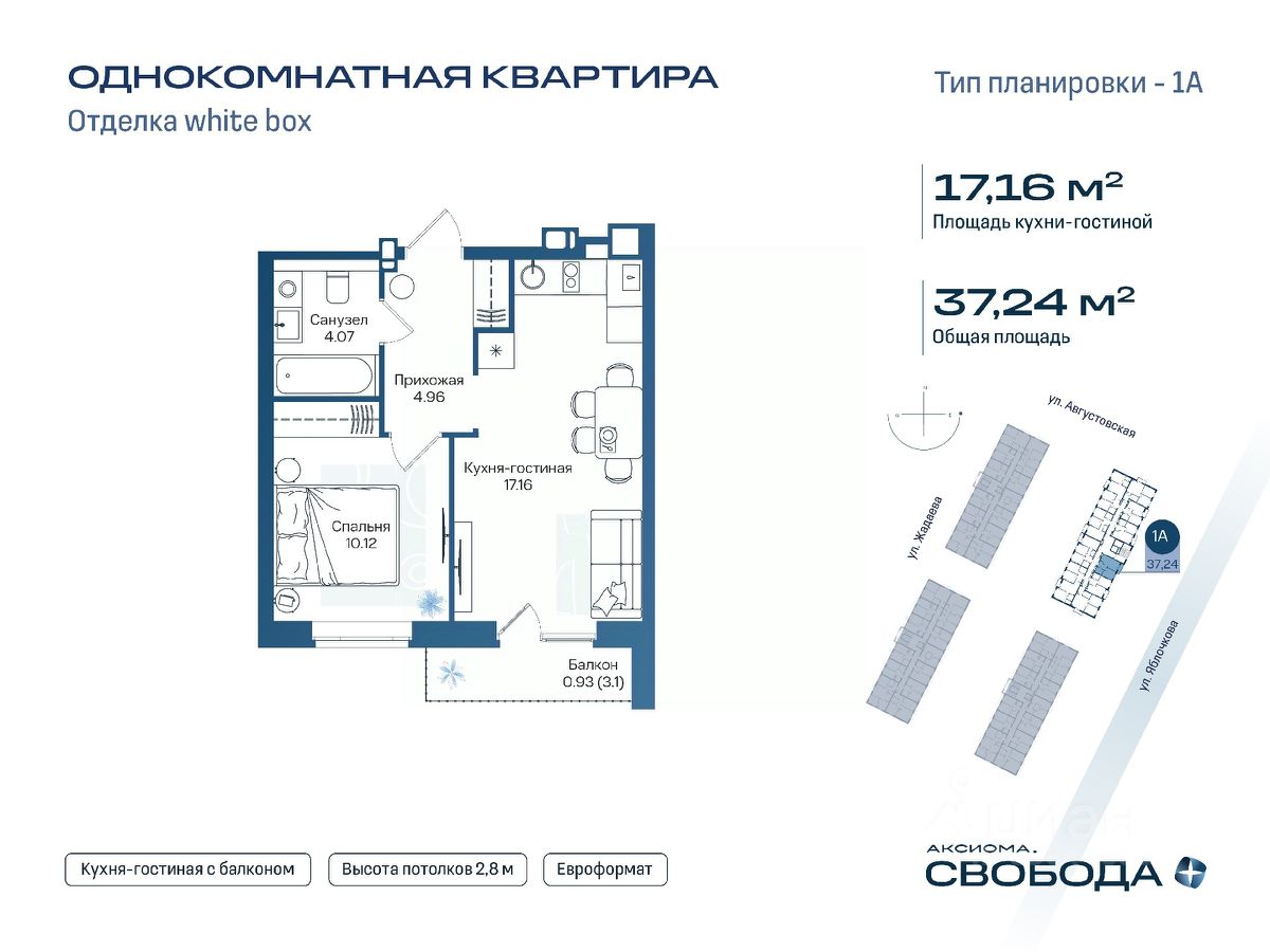 Продаётся 1-комнатная квартира в строящемся доме (Дом 1), срок сдачи: I-кв. 2029, общей площадью 37.24 кв.м., на 12 этаже. Новый жилой комплекс ''Аксиома. Свобода плюс'' от застройщика ''Аксиома'' расположен по адресу: Россия, Астрахань, Августовская улица