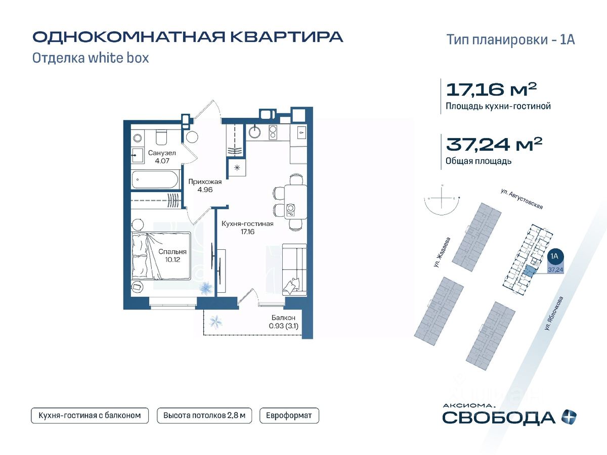 Продаётся 1-комнатная квартира в строящемся доме (Дом 1), срок сдачи: I-кв. 2029, общей площадью 37.24 кв.м., на 7 этаже. Новый жилой комплекс ''Аксиома. Свобода плюс'' от застройщика ''Аксиома'' расположен по адресу: Россия, Астрахань, Августовская улица