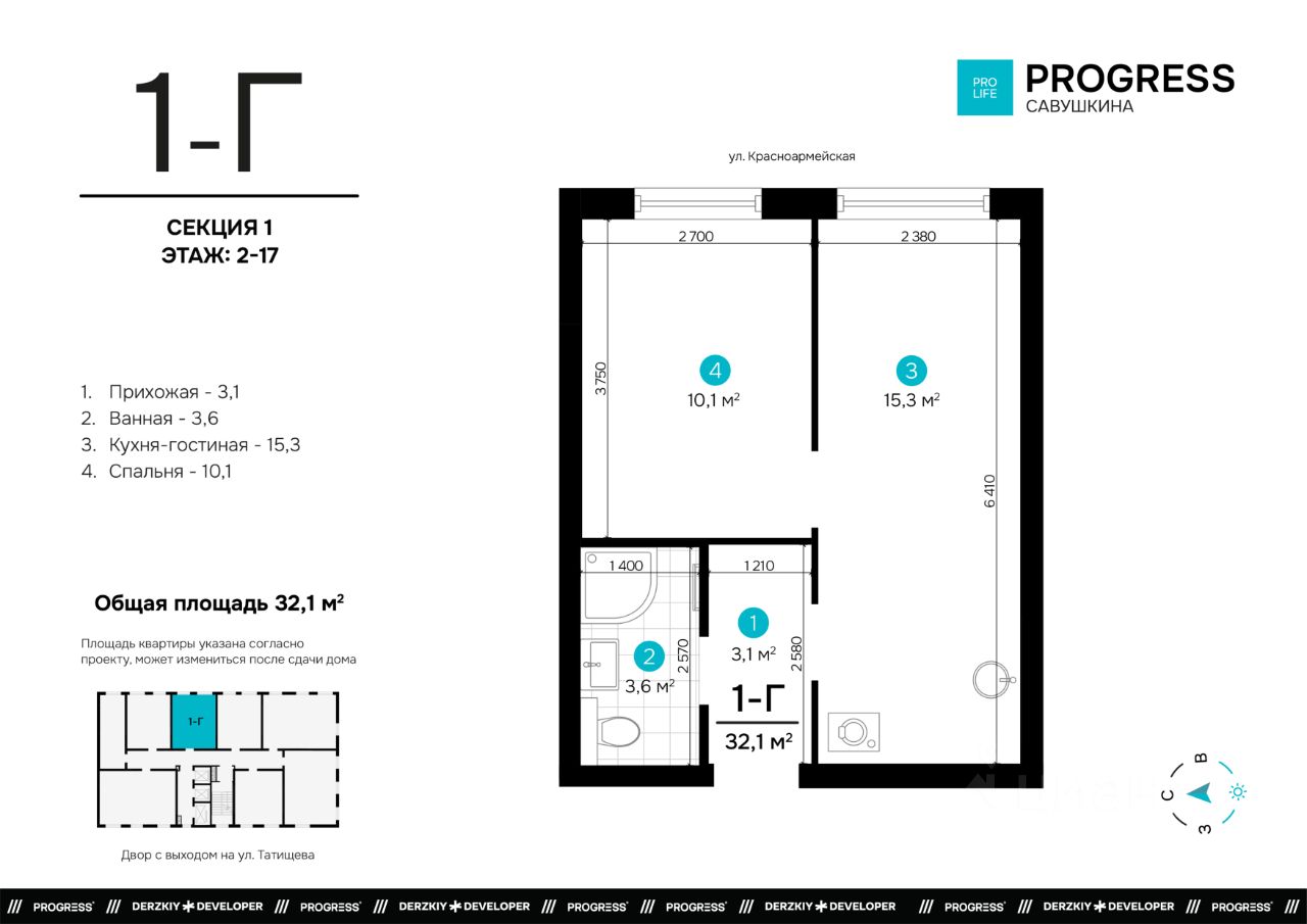 ''ПРОГРЕСС Савушкина'' для тех, кто открыто смотрит в будущее. Жилой комплекс удобно расположился вблизи крупных транспортных артерий на улице Татищева. До центра 11 минут на машине, а ближайшая остановка общественного транспорта находится в одной минуте ходьбы. Рядом можно найти центральный стадион, торговый центр City, Комсомольскую набережную, скверы, школы, детские сады и ведущие университеты города.