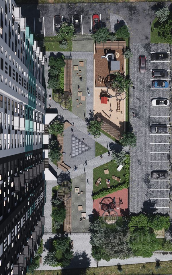 Амфитеатр с контактным фонтаном настоящий бриллиант в самом сердце двора. Центр притяжения всех жителей комплекса выполнен в форме этого драгоценного камня. Рядом расположились комфортные relax-зоны, где можно зарядиться энергией перед новым днём. Для любителей активного отдыха создано workout-пространство. А на детских площадках для разных возрастов каждый ребёнок может раскрыть свой потенциал и обрести новых друзей.