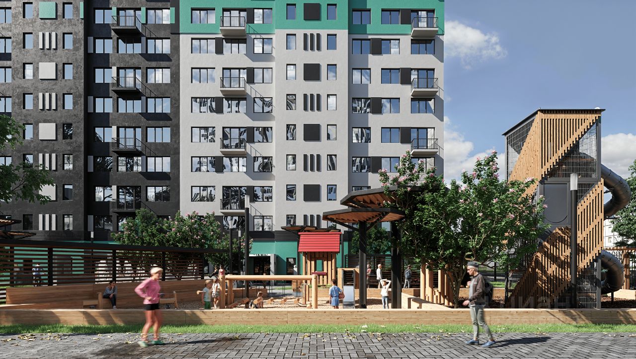 Амфитеатр с контактным фонтаном настоящий бриллиант в самом сердце двора. Центр притяжения всех жителей комплекса выполнен в форме этого драгоценного камня. Рядом расположились комфортные relax-зоны, где можно зарядиться энергией перед новым днём. Для любителей активного отдыха создано workout-пространство. А на детских площадках для разных возрастов каждый ребёнок может раскрыть свой потенциал и обрести новых друзей.