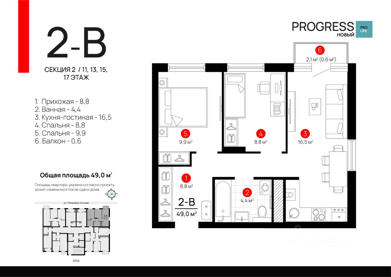 Общая площадь48,98 м2