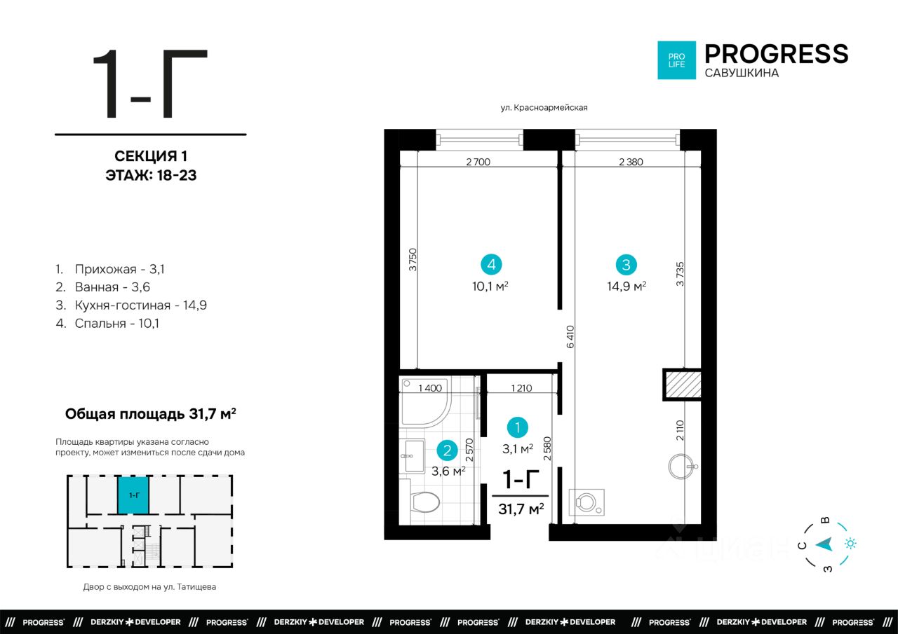 ''ПРОГРЕСС Савушкина'' для тех, кто открыто смотрит в будущее. Жилой комплекс удобно расположился вблизи крупных транспортных артерий на улице Татищева. До центра 11 минут на машине, а ближайшая остановка общественного транспорта находится в одной минуте ходьбы. Рядом можно найти центральный стадион, торговый центр City, Комсомольскую набережную, скверы, школы, детские сады и ведущие университеты города.