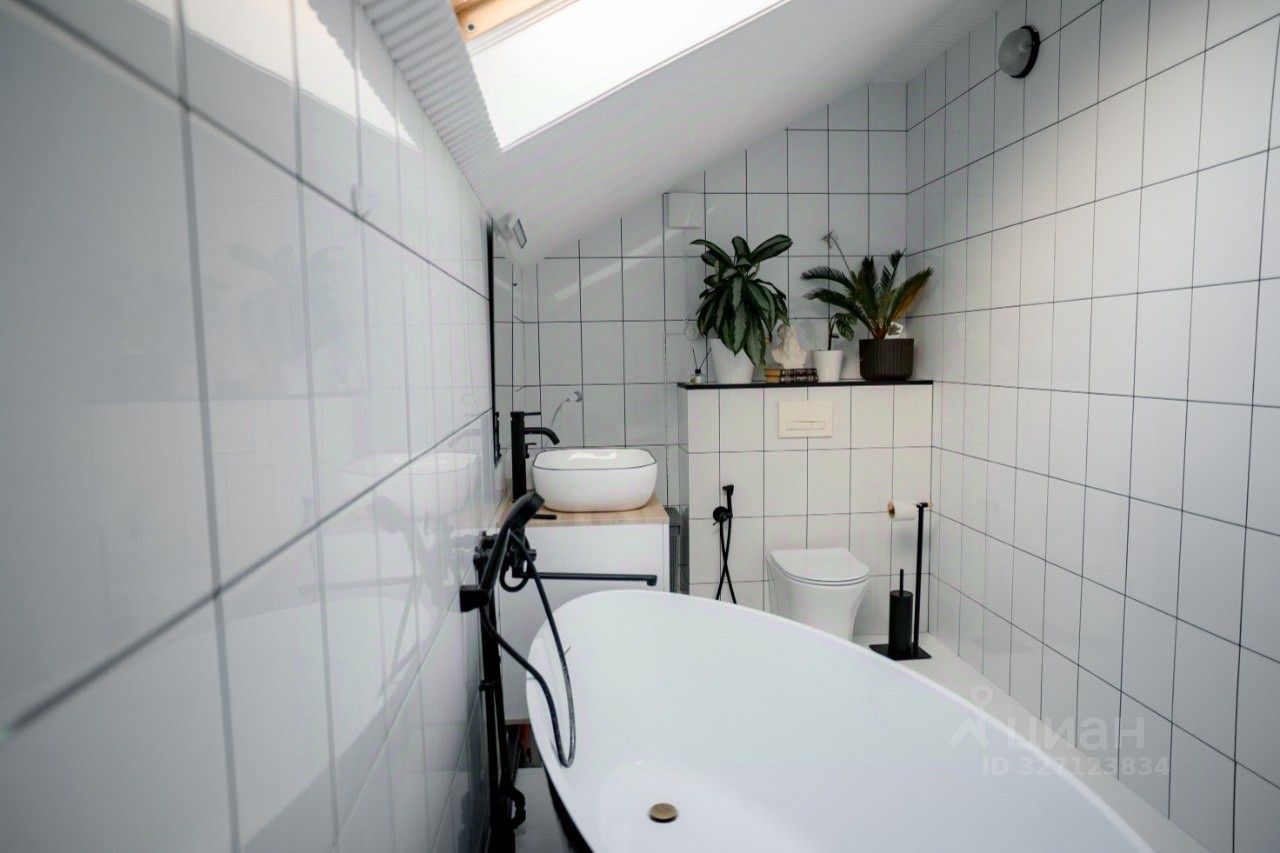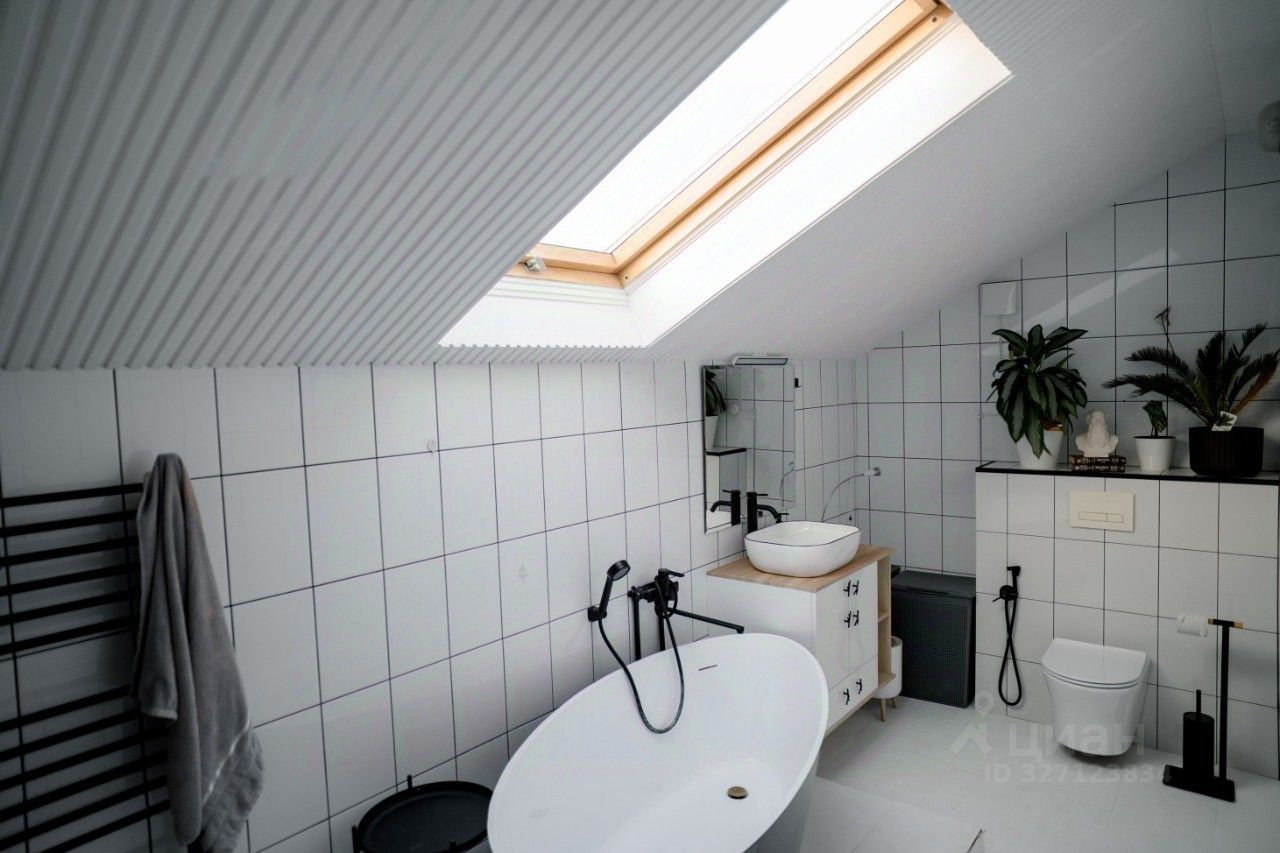 1 этаж: душевая + постирочная, 2 этаж: большая ванна с мансардным окном,