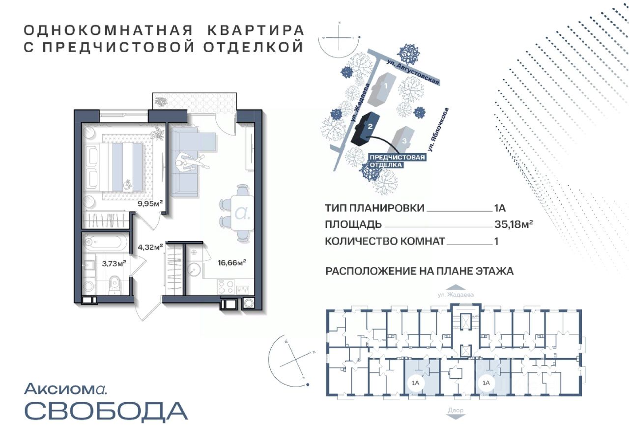 Продаётся 1-комнатная квартира в строящемся доме (Дом 2), срок сдачи: II-кв. 2026, общей площадью 35.17 кв.м., на 6 этаже. Свобода духа, свобода выбора, свобода творчества! Место, где вы точно станете автором своей жизни!